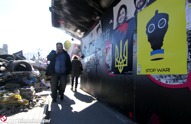В центре Киева в рамках международной акции в поддержку Украины «The Voice of Peace» («Голос мира») открылась уличная выставка плакатов. Арт-галереей послужил забор вокруг здания ЦУМа, которое находится на реконструкции.
