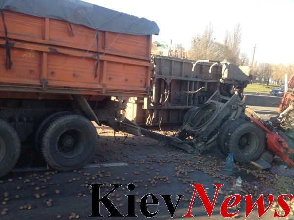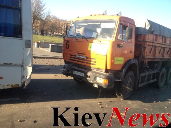 Приблизительно в 8 утра, 30 марта, на проспекте Бажана, возле Харьковской площади, КАМАЗ перевозивший картошку врезался в маршрутный автобус. Водители транспортных средств отделались, можно сказать легким испугом. Об этом сообщает корреспондент KievNews.