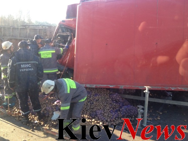 На выезде из Киева произошло трагическое ДТП: водителя грузовика зажало в кабине (ФОТО)