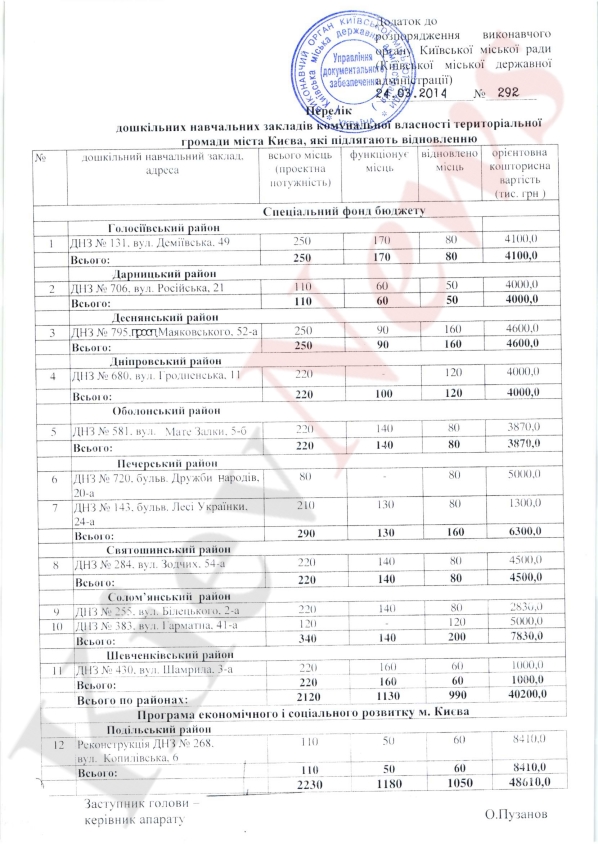 Так, в Голосеевском районе восстановят ДУЗ № 131 на ул. Демеевской, 49, в Дарницком районе - ДУЗ № 706 на ул. Российской, 21, в Деснянском районе - ДУЗ № 795, что на ул. Маяковского, 52- А, в Днепровском - ДУЗ № 680, ул. Гродненская, 11.