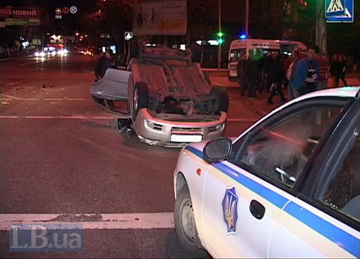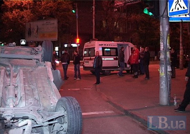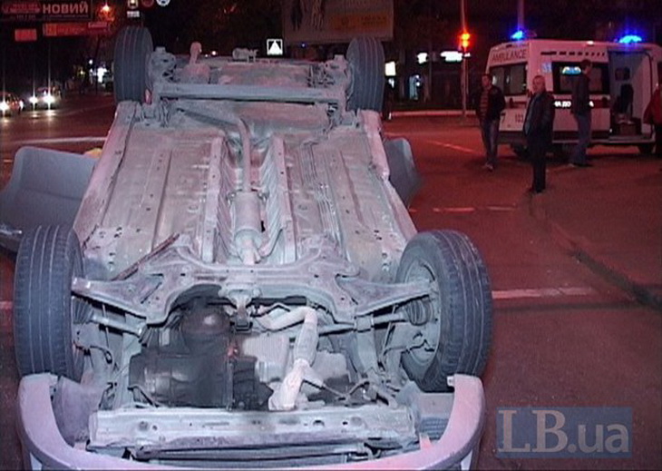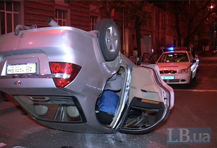 Во вторник в Киеве в результате столкновения двух Chevrolet Aveo один из них перевернулся на крышу. Травмы получили водитель и беременная женщина-пассажир одного из авто.