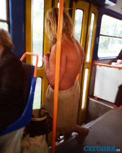 Странный полуголый пассажир, который робко стоял на ступеньках трамвая, вызвал недоумение и живой интерес у людей. Одни украдкой на него поглядывали, другие пытались снять на камеру в телефоне...