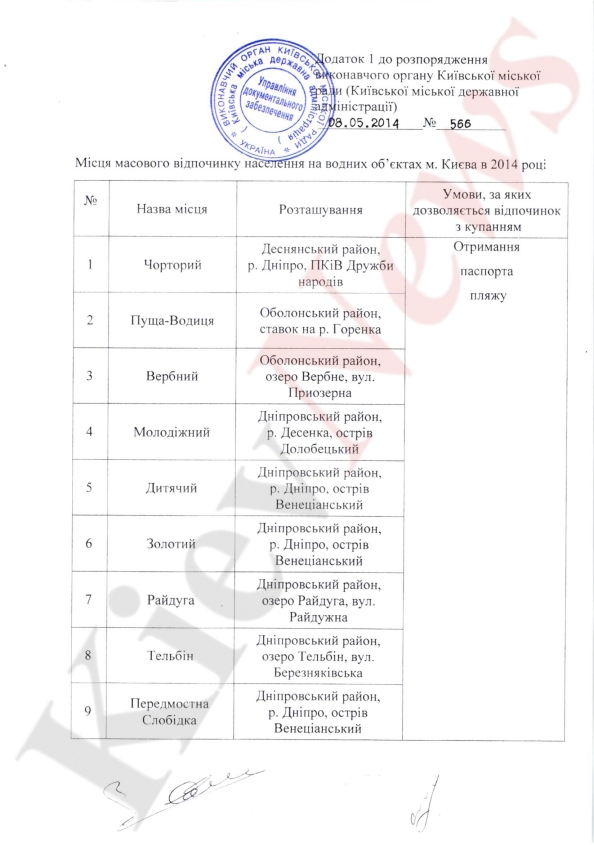 Купаться разрешили на 25 пляжах, при условии получения ими пляжных паспортов. Так в число пригодных попали пляж Черторой, Молодежный, Венеция, Золотой пляж, Центральный пляж на Трухановом острове, на Русановской косе, в озере Тельбин, на Осокорках возле Южного Моста и другие.