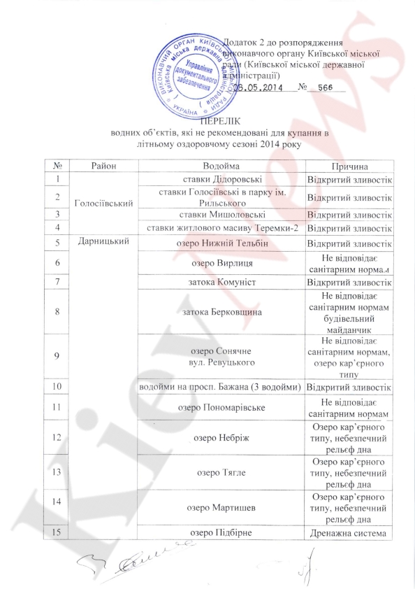 50 водоемов Киева оказались под запретом, так как 28 озер не соответствуют санитарным нормам. Не стоит купаться на озере Выдубецком, Лыбедском, Синем, Голубом. Также не стоит купаться в парке Партизанской славы, Алмазном на троещине, озере Вырлица, в Коцюбинском и других, помельче, сообщает «Комсомольская правда в Украине».