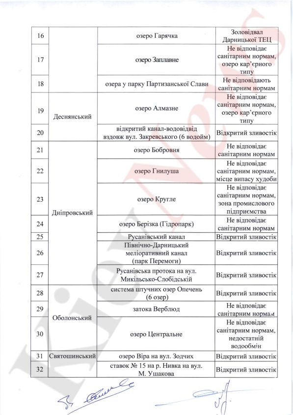 В КГГА определили список водоемов, в которых не рекомендовано купаться во время летнего сезона.