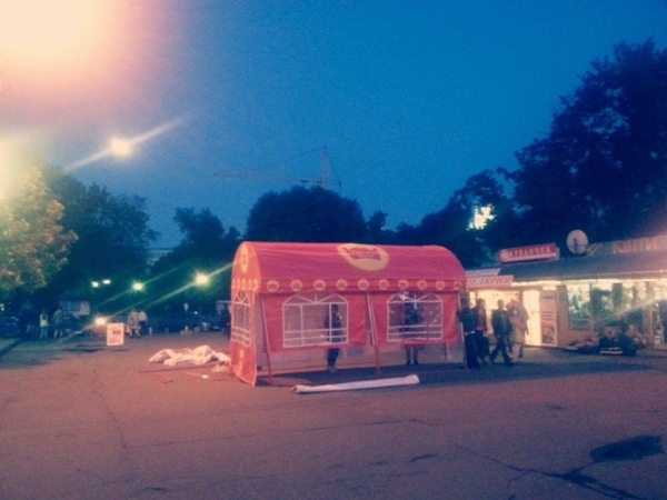 «На вопрос, будет ли это стоять и на основании чего, владельцы МАФа решили тактично промолчать», — рассказал свидетель установки шатра киевлянин Руслан Гутников.