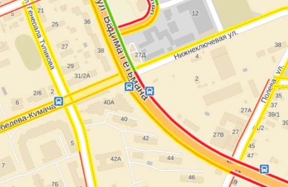От Караваевых дач образовалась пробка. Из трех полос движения осталась только одна. Люди садятся на маршрутки и едут по единственной открытой полосе.