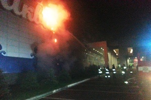 В полночь на фасаде здания аквапарка "Терминал" в Броварах загорелся наружный рекламный щит. Пожарные быстро - за 13 минут - ликвидировали пожар.