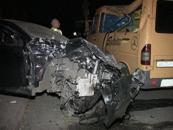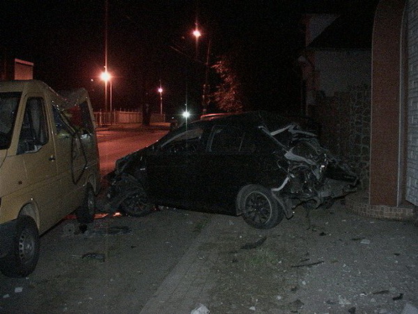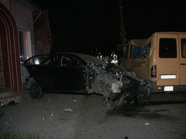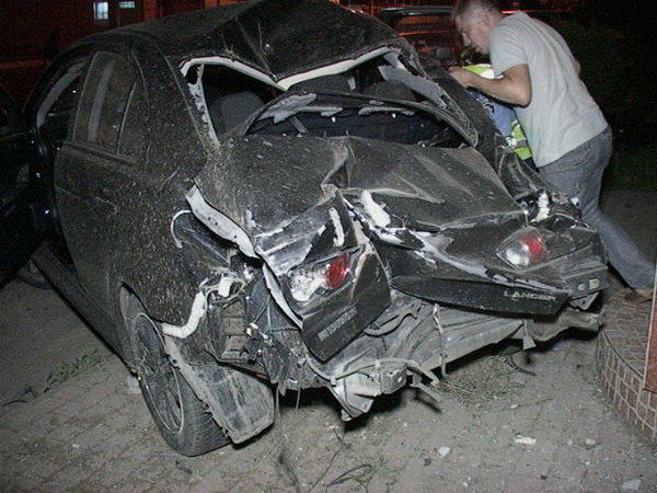 Отлетев от стены, Mitsubishi приземлился на крышу стоявшего возле дома микроавтобуса Mercedes. Когда очевидцы подошли ближе - на траве, примерно в десяти метрах от машины, лежал мужчина. В разбитой машине находилась женщина-пассажир.