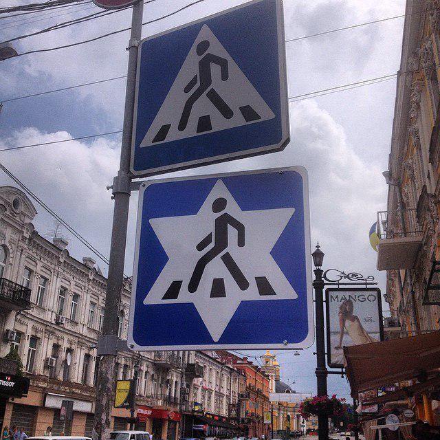 В центе Киева на пересечении улиц Сагайдачного и Игоревской (Подольский район) появился «еврейский» знак пешеходного перехода.