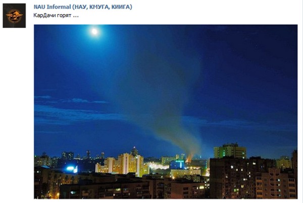 Киевляне, проживающие в районе пожара пишут, что проснулись от сильного запаха гари.
