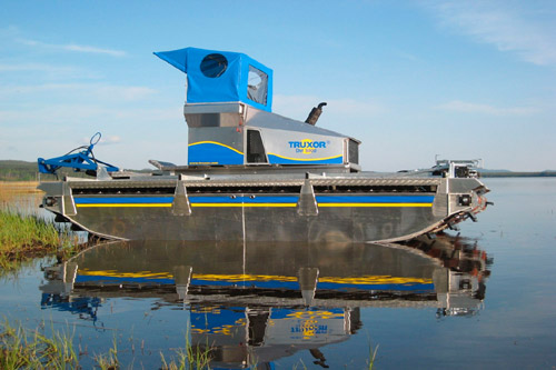 Универсальная машина-амфибия Truxor DM 5000 (Швеция) используется для очистки иловых площадок на очистных сооружениях, для подводного скашивания водной растительности (камыш, рогоза и т. д.), сбора скошенных растительных остатков и бытового мусора с поверхности воды, расчистки каналов открытых сливостоковых систем и русел рек от иловых отложений и мусора.