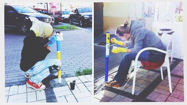 Киевлянки разукрасили унылые серые столбики на парковке (ФОТО)