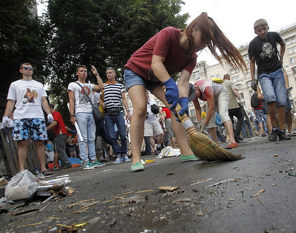 Мэр столицы Виталий Кличко, народные депутаты и депутаты Киевсовета вместе с киевлянами убирали на Крещатике.