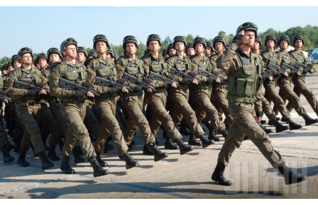 В репетиции приняли участие украинские военнослужащие, бойцы Нацгвардии, сводный батальон участников АТО и курсантки МВД.
