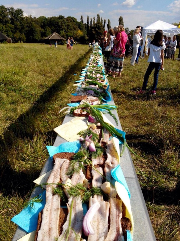 В Пирогово приготовили самый большой бутерброд с салом (ФОТО)