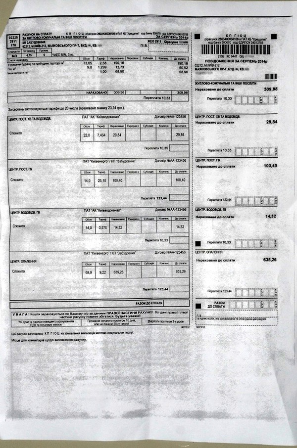 15 сентября киевляне получат обновленные квитанции за коммуналку (ДОКУМЕНТ)