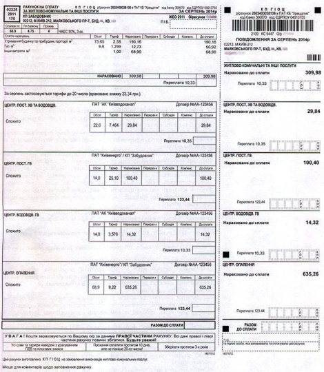 Киевляне уже получают новый вид платежки за комуналку (ДОКУМЕНТ)