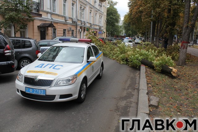 В центре Киева перекрыли движение: на автомобиль упало дерево (ФОТО)