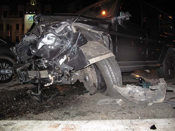 Вдруг, перед ним появился черный внедорожник — Mercedes-Benz G-Klasse-500. «Кубик» беспардонно ехал по встречке от Европейской площади в сторону Бессарабки. Мощный внедорожник цепляет впереди идущие Daewoo Lanos и Daewoo Nexia, затем таранит Audi А6.
