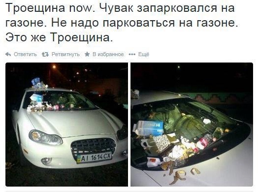 Жители Троещины отомстили водителю за парковку на газоне