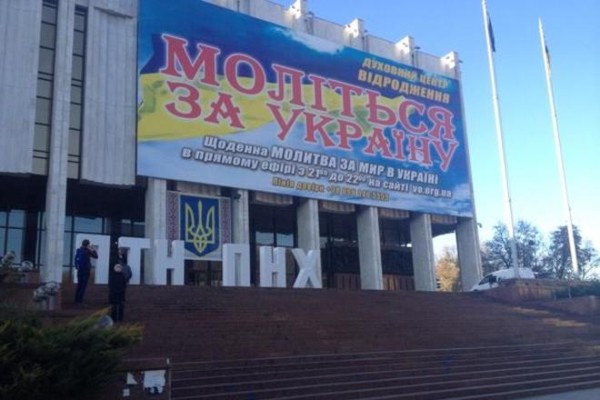На этот раз, на случай если Президент Путин еще не понял, знаменитые шесть букв киевляне выложили в самом центре украинской столицы – на ступеньках Украинского дома, как под призывом молиться за Украину.
