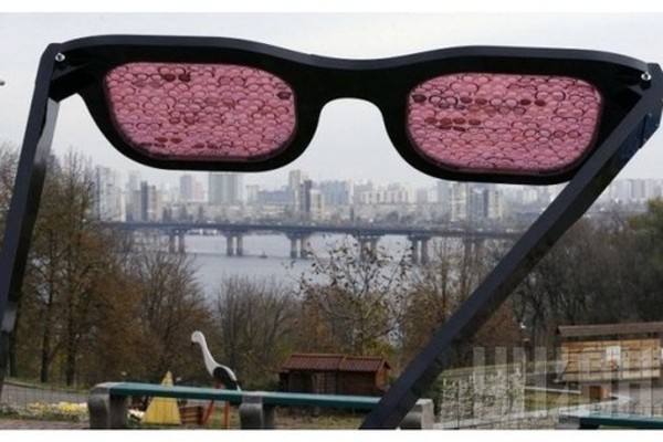 В Киеве на Певческом поле установили огромные розовые очки.Арт-объект «Мир сквозь розовые очки» открыли в рамках проекта Kiev Fashion Park.Авторы скульптуры — Владимир Падун и Людмила Роздобудько-Падун.