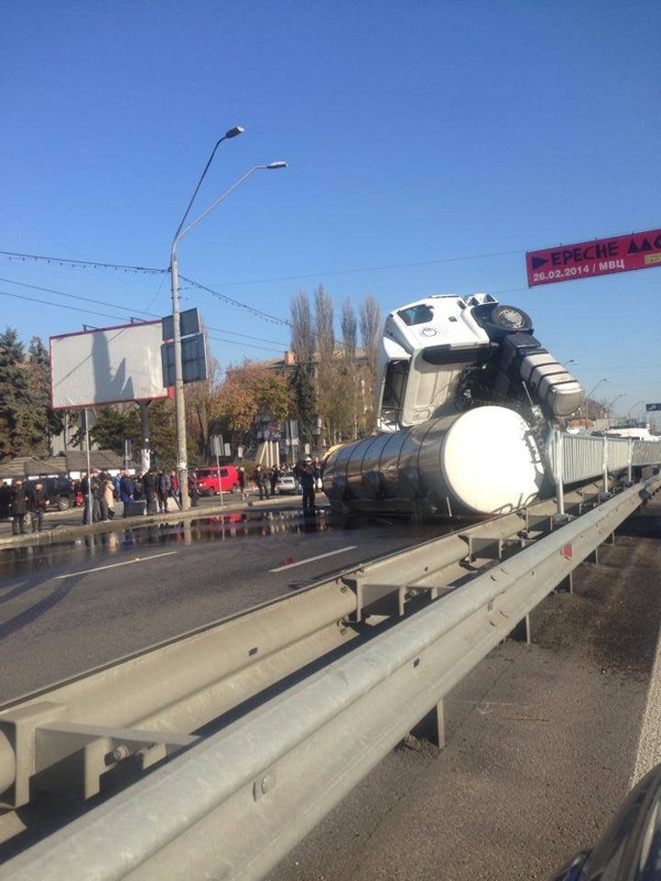 На проспекте Победы перевернулась фура с подсолнечным маслом (ФОТО)