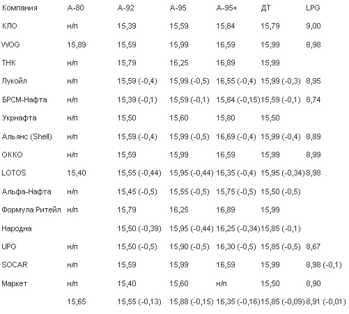 Розничные цены на бензин и дизельное топливо в Киеве 28 октября 2014 г., по сравнению с предыдущим торговым днем, снизились в среднем на 9-16 копеек. Об этом свидетельствуют данные мониторинга ценового департамента "Консалтинговой группы А-95".