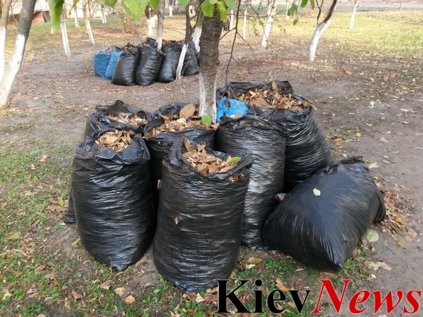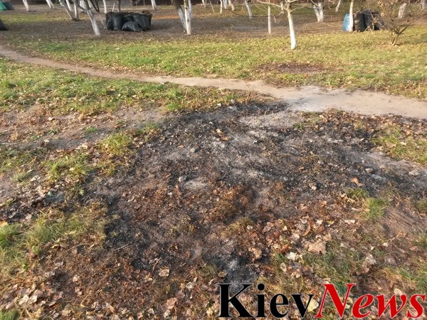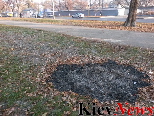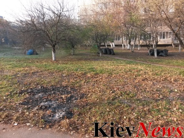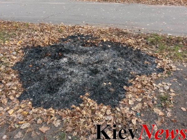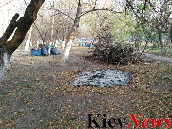 В Святошинском районе коммунальщики к уборке территории подошли без особого энтузиазма. Весь день они демонстративно собирают опавшую листву в мешки, а под покровом темноты сжигают ее в жилой зоне.