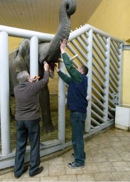 Большой опыт и многолетняя практика специалиста сказались – слон сразу отнесся по-дружески к авторитетному гостю и без проблем дал себя осмотреть, сообщается на страничке зоопарка в Facebook.