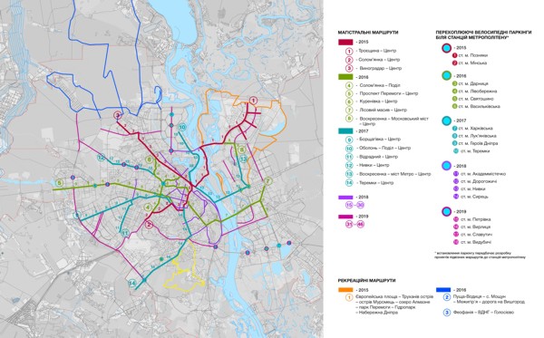 Первые маршруты по направлению: Троещина - Центр, Соломенка - Центр и Виноградарь - Центр могут появиться уже в 2015 году, сообщили НВ в КГГА. Утвердить программу велопланировки столицы планируют до конца этого года. К разработкесхемы привлекли членов Ассоциации велосипедистов Киева, немецких специалистов и коммунальное предприятие Житлобудинвест-УКБ.