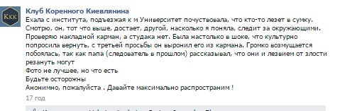 В конце октября сообщалось, что в Киеве в транспорте участились случаи ограбления пассажиров цыганами – они орудуют в районе станции метро "Шулявская", возле цирка, на Подоле, у центрального ж/д вокзала и даже в центре города.