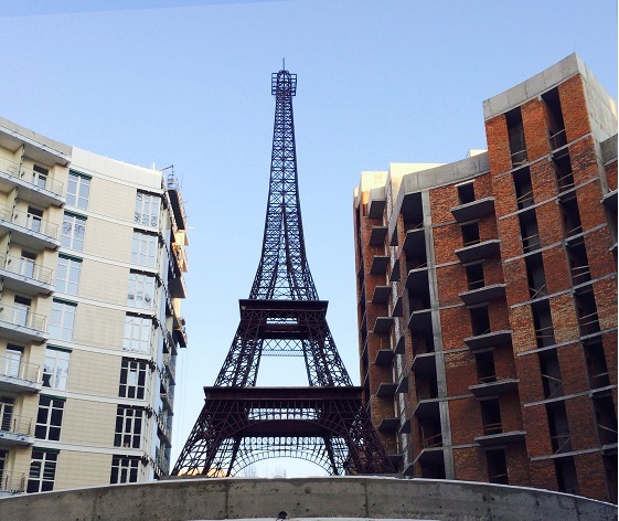 В Киеве во дворе новостроя по улице Анри Барбюса установили уменьшенную копию Эйфелевой башни. Высота киевской Эйфелевой башни - 16 метров.