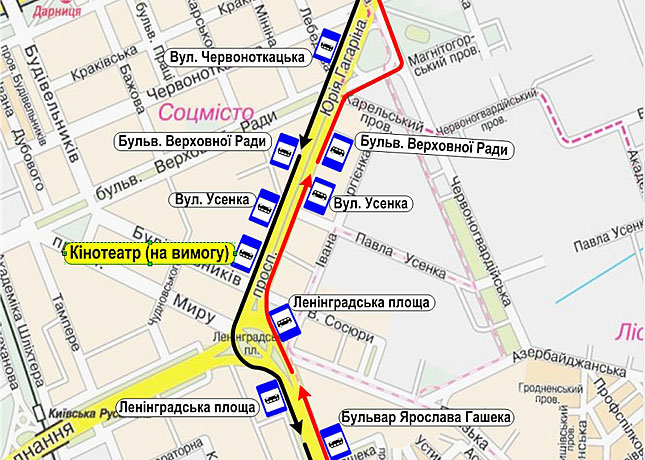 С целью улучшения качества предоставления транспортных услуг для автобусов маршрутов №6 и №63 на проспекте Гагарина в направлении Ленинградской площади внедрена дополнительная остановка «Кинотеатр» с режимом работы «по требованию». Об этом сообщили в коммунальном предприятии «Киевпастранс».