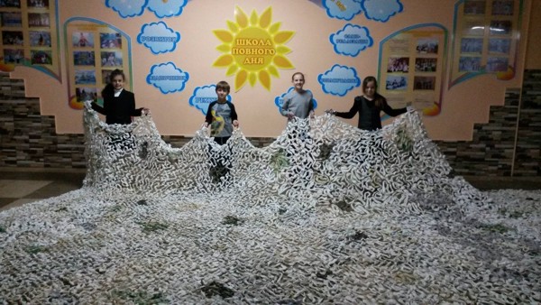 Ученики киевской школы №247, которая находится на Троещине, довольны проделанной работой.Это первая маскировочная сетка школьников, и уже сегодня она отправится в 11 батальон на помощь нашим солдатам в АТО.