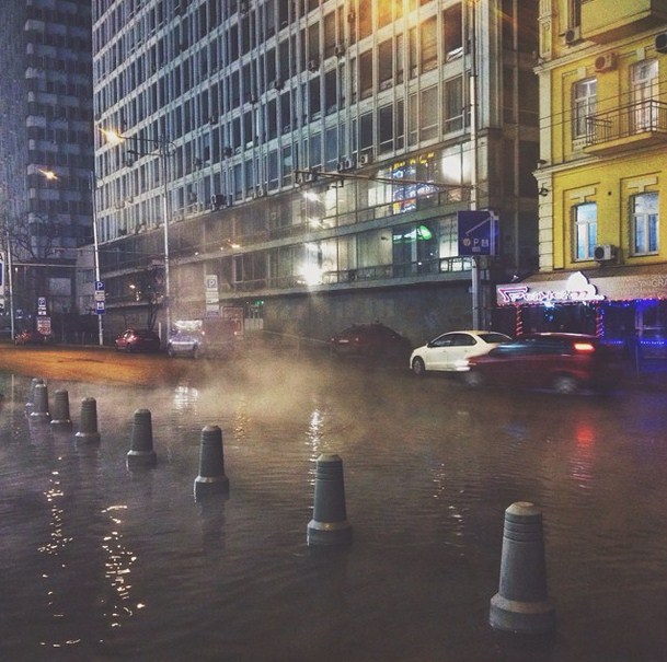 "Начало Эспланадной - не стесняйтесь, бегите за плавками, хватайте байдарки - возможен сплав в горячей воде от Леси Украинки и по Эспланадной ко Дворцу Спорта:))) Киев ночной такой не предсказуемый:)))", - пишет один из свидетелей события.