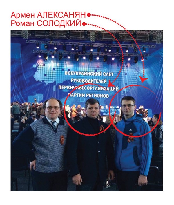 Она подчеркнула, что Алексанян с георгиевской ленточкой (на фото справа). “Этот съезд регионалов проходил 1 февраля 2014 года, через 2 месяца после начала Майдана, после принятия диктаторских законов и первых жертв”, — резюмируется в сообщении.