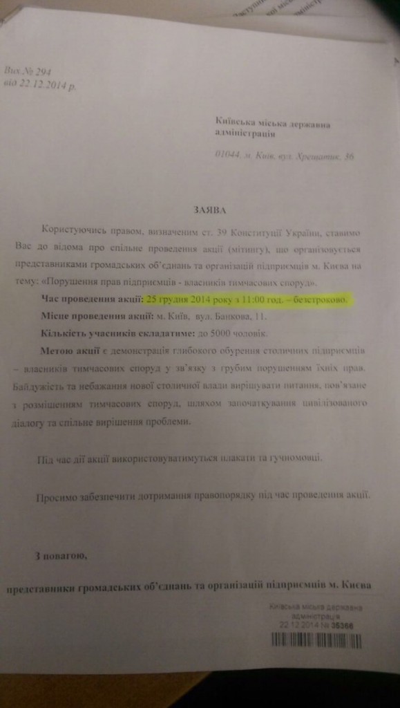 Активисты киевского сообщества «МАФи в Києві» заявили, что после обнародования информации о причастности регионала Солодкого к организации пикета МАФовиков, теневые владельцы ларьков «увели его в тень» и вместо него заявку на проведения митинга зарегистрировал Армен Алексанян, который тоже оказался регионалом. Об этом написали участники киевского Facebook-сообществе «МАФи в Києві!» и предоставили фотофакт.