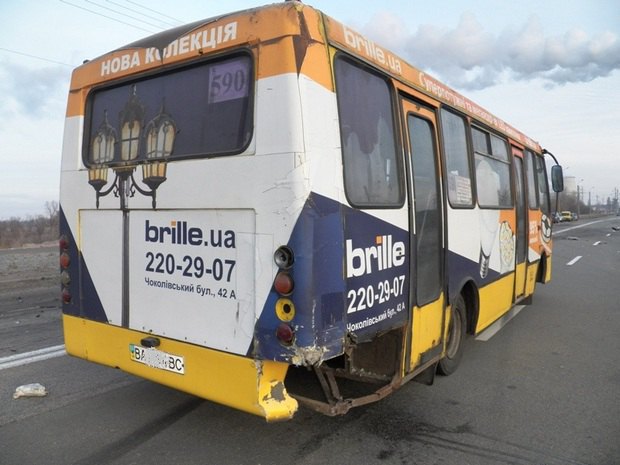 По рассказам очевидцев - водитель Lexus, двигаясь на большой скорости в направлении выезда из Киева, ударился о бордюр, после чего столкнулся с маршрутным автобусом «Богдан», ехавшим левее. После столкновения легковой автомобиль вылетел на встречную полосу и протаранил второй маршрутный автобус «Богдан».