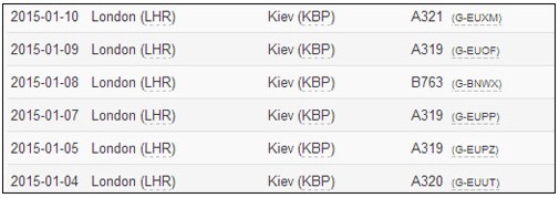 По данным онлайн-трекера рейсов, пострадал борт Airbus A319 с бортовым номером G-EUPP. Именно он выполнял рейс Лондон-Киев 7 января.