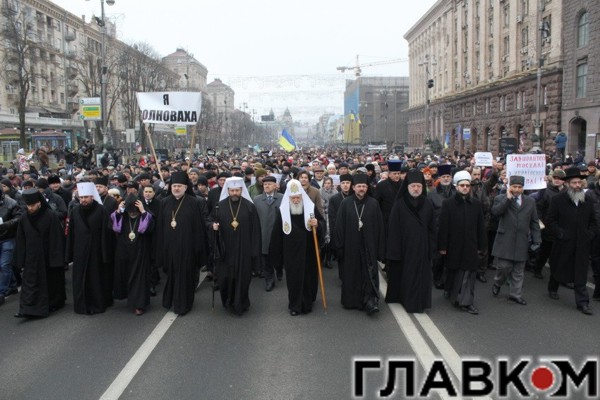 Марш Единства возглавили главы украинских церковей. 85-летний Патриарх Филарет прошел во главе колонны по всему маршруту ее следования.