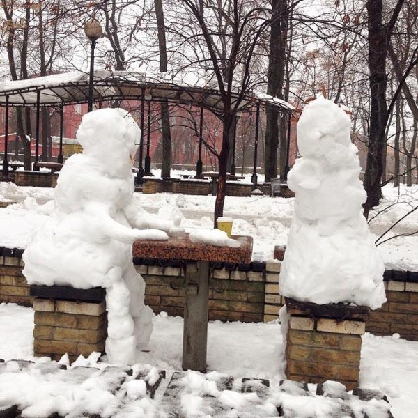 В столичном парке Шевченко появились необычные фигуры из снега. Об этом на своей странице в соцсети Facebook сообщила киевлянка Ирина Курашина«Шахматисты в парке Шевченко», - прокомментировала киевлянка фото.
