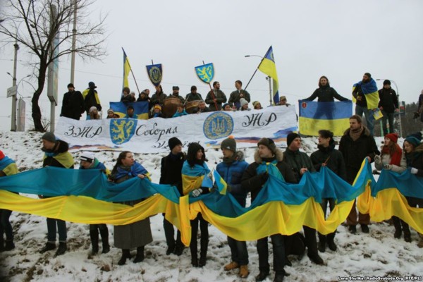 Участники акции двигались колонной по мосту Патона, выкрикивали лозунг: «Одна, единственная – соборная Украина». Также во время акции минутой молчания и свечами почтили память первой жертвы на Майданиу – Сергея Нигояна.