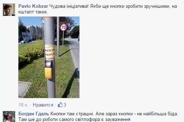 Пользователи соцсети в комментариях одобряют данную инициативу, а также предлагают поменять кнопки на светофорах на более удобные.