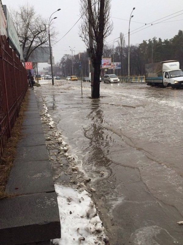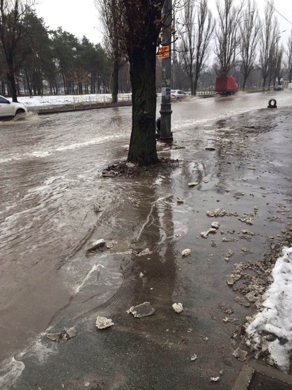 Сегодня, 23 января, в Киеве затопило проспект Освободителей, который расположен в Днепровском районе столицы. Об этом сообщают пользователи соцсетей.