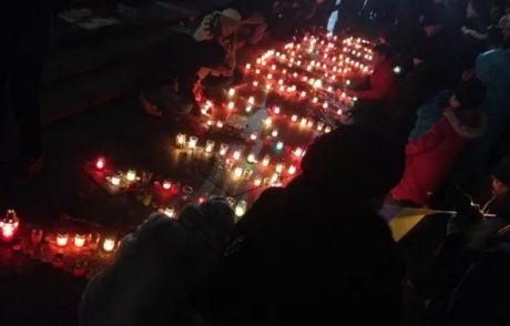 Участники акции не выкрикивали никаких лозунгов. Некоторые держат государственные флаги и свечи.
