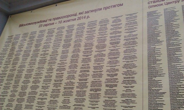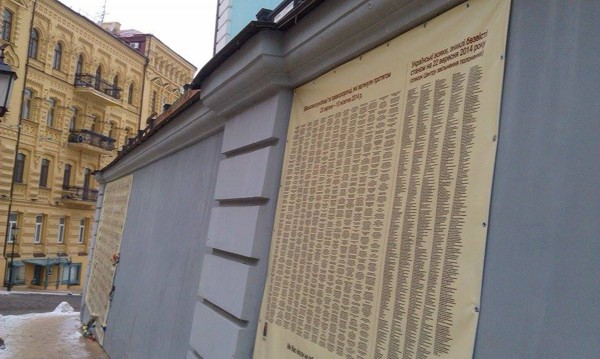 На стенах Андреевской церкви разместили списки героев, погибших в зоне АТО