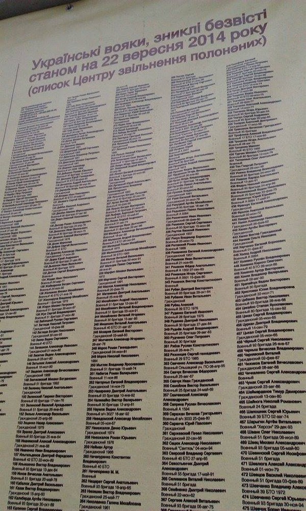 В Киеве на стенах Андреевской церкви, сооруженной в честь апостола Андрея Первозванного, размещены стенды с имена украинских граждан, которые пропали без вести и погибли выполняя свой долг в рамках Антитеррористической операции на Востоке Украины.