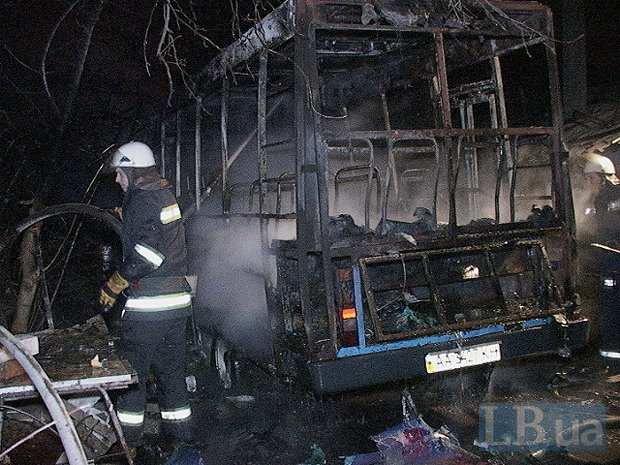 Как выяснилось - загорание произошло на территории станции техобслуживания. Огонь увидел случайный прохожий, он же позвонил на линию 101. На место происшествия прибыли спасатели 19-й пожарно-спасательной части города Киева. К тому времени автобус был уже полностью охвачен огнем.